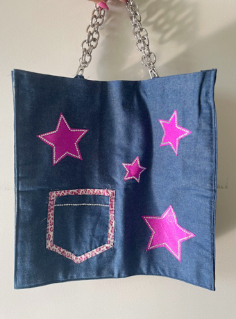 バックの生地が硬く縫い付けるのが大変で難しく、バックの星の部分のグリッターシールやストーンシールがすぐ剥がれてしまいどうしたらしっかり貼ることができるかというところに一番苦戦しました。