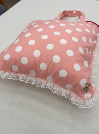 少しの休憩時間に少しでも疲れを取りたいと思い、枕のようなトートバッグを作りました。