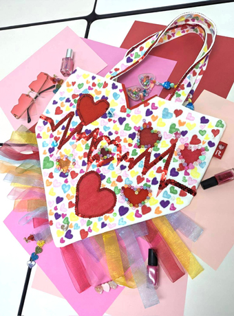 このトートバッグは愛をテーマに制作しました、この作品に関わる全ての方々がハートフルな毎日を過ごせますようにと丁寧に縫製、装飾しました。