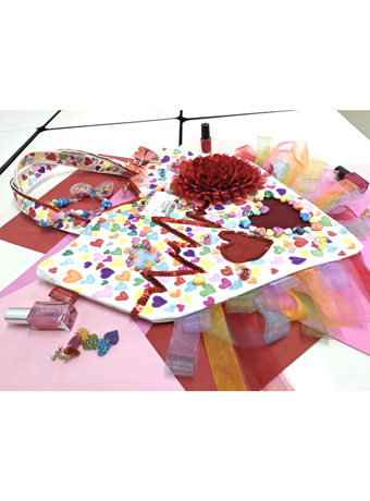アルコールマーカー、ビーズ、フェルト、リボン、ビニール、スパンコール、ハートの容器