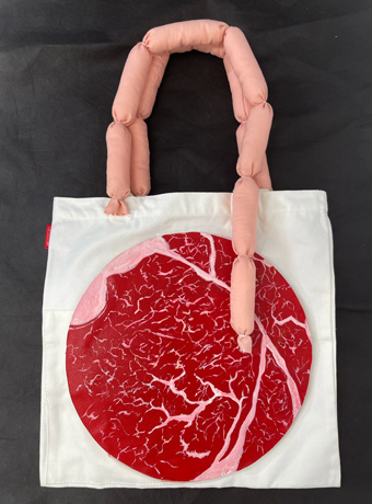 お肉好きが一目で分かるわんぱくなトートバッグです。