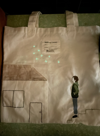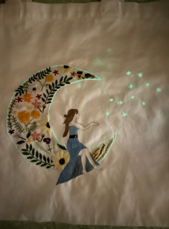 星は蓄光刺繍糸を使用し、より儚く美しいイメージを作り出しました。