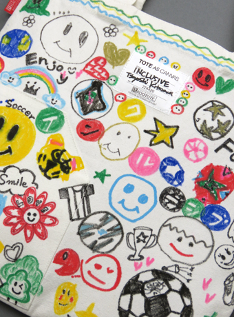 同じキャンバスに皆で楽しく表現したこの作品をご覧いただくことで、一緒に描いた子どもたちや、このトート作品を見ていただいた皆様にも何かを感じていただければ嬉しく思います。