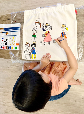 布用絵の具、布用マーカー、スパンコール、ボンボン