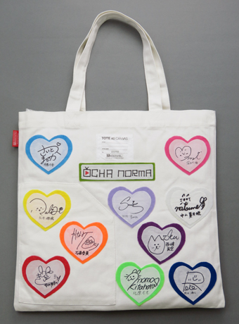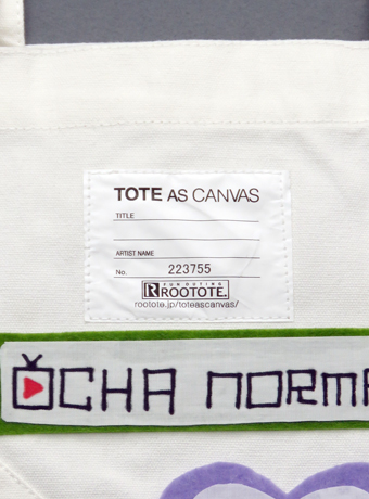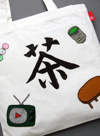 表面はグループ名のOCHA NORMAから「お茶の間」をイメージし、書の「茶」を中心に「ほっとする憩いの空間」にふさわしいアイテムを貼り付けました。